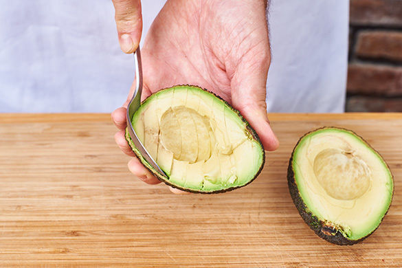 Die Avocado halbieren und den Stein entfernen. Das Fruchtfleisch mit einem Esslöffel aus der Schale lösen, in dünne Scheiben schneiden und mit den Zwiebelringen auf den Pizzen verteilen. Die Pizzen mit der Salsa beträufeln und mit den Limettenspalten garniert servieren.