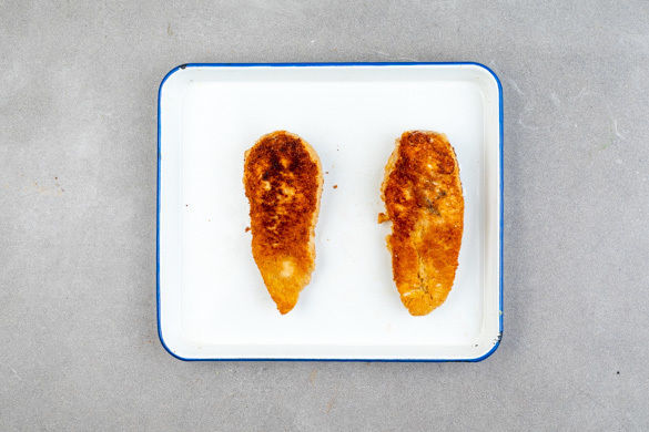Das Fleisch in einer großen Pfanne mit 2–3EL Pflanzenöl bei mittlerer Hitze auf jeder Seite 1–2Min. goldbraun ausbacken. Anschließend in eine Auflaufform geben und 10–12Min. im Ofen garen, bis das Fleisch durch ist.