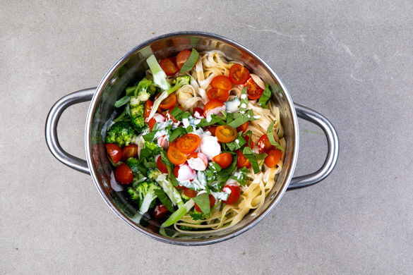 Die Pasta in das kochende Wasser geben und 6Min. kochen.