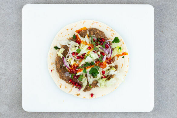 Inspiriert vom türkischen Klassiker Çiğ Köfte hat unsere Köchin Martina heute eine überaus köstliche vegane Version für euch: Auf die weichen Weizenfladen wird ein cremiges Bulgur-Linsen-Püree gestrichen und üppig belegt mit frischem Salat, Zwiebeln, Kräutern und Granatapfelkernen. Die Sweet-Chili-Sauce on top ist eine Anleihe aus der asiatischen Küche – erlaubt ist, was schmeckt!