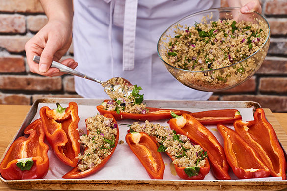 Die Hemsley Schwestern sind für ihre gesundheitsbewussten Rezepte weltweit bekannt. Eines ihrer Lieblingsgerichte haben sie uns für euch mitgegeben: Die mit dem Power-Korn gefüllten und mit Trakaja-Käse überbackenen Paprika-Schiffchen bringen nicht nur ordentlich Farbe auf den Teller aber vor allem jede Menge Energie.