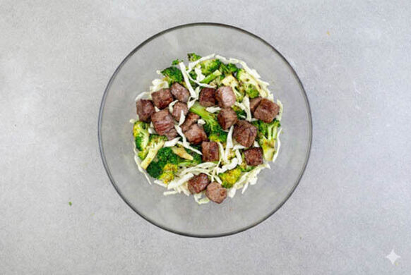 Das cremig-pikante Erdnussdressing ergänzt perfekt den knackigen Weißkohlsalat mit Brokkoli und zarten Rindfleischstreifen. Die Kombination aus Sambal Badjak, Erdnussbutter und Kokosmilch ist einfah zu köstlich! Etwas frischen Koriander und geröstete Erdnüsse dazu und fertig ist dein neues Lieblingsgericht!