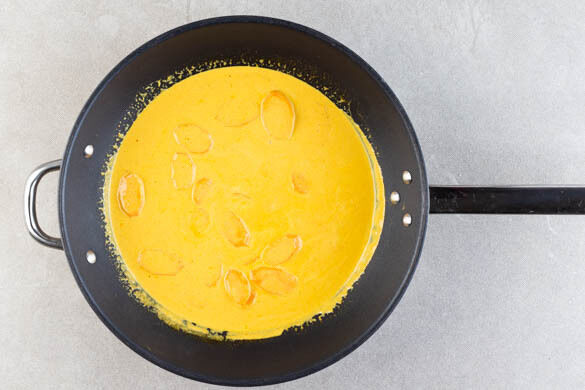 Die Karotten mit in die Pfanne geben und das Curry ca. 5Min. köcheln lassen.