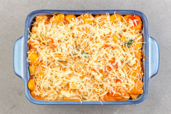 Die einfachsten Gerichte sind manchmal auch einfach die beliebtesten. Bestes Beispiel: dieses saftige, vegetarische Gnocchi-Gemüse-Gratin, das nach dem Backen von einer knusprigen Käsekruste überzogen ist. Da kann der Küchenwecker nicht schnell genug klingeln!