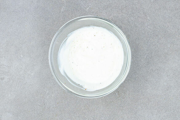 Den Joghurt mit dem restlichen Knoblauch verrühren und den Dip mit Salz und Pfeffer abschmecken.
