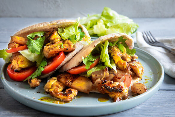 Für einen ausgelassenen Grillabend auf der Terrasse ist es noch zu kalt. Macht aber nichts! Mit diesem fixen Schmaus holst du den Sommer nach drinnen! Einfach zartes Hähnchenschenkelfleisch anbraten, süße Ananaswürfel, duftendes Currypulver und rauchige BBQ-Sauce dazu und in warmem Pitabrot mit geschmolzenem Käse servieren. Für die Extraportion Frische und Farbe sorgen fruchtige Tomaten, knackiger Salat und feiner Koriander.