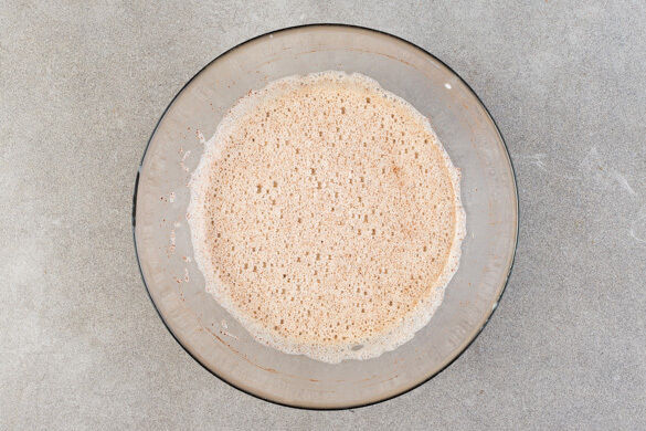 Die Haferflockenmischung mit der Eiermilch verrühren und in einer Auflaufform verteilen. Die Größe der Form so wählen, dass das Porridge 4–5cm hoch in der Form sitzt. Abgedeckt mindestens 1 Stunde und bis zu 24 Stunden kalt stellen.
