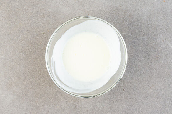 Den Joghurt mit 1EL Zucker glatt rühren und ebenfalls abgedeckt kalt stellen.