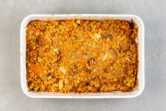 Ein Porridge, das du bei Bedarf schon am Vorabend fix vorbereiten kannst und das morgens nur noch in den Ofen schieben musst. Perfekt für einen faulen Sonntag im Bett. Und genussvoll dazu mit nährenden Haferflocken, Karotten, fruchtigen Ananasstückchen, Walnüssen und Rosinen und einer leckeren Joghurtcreme. Das Rezept ergibt bei einem 2-Port.-Plan 3, bei einem 4-Port.-Plan 6 Portionen.