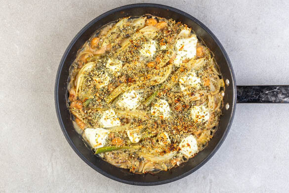 Aromatische Bohnen-Fenchel-Pfanne mit Feta und Kürbiskerntopping