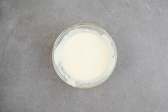 Den Backofen auf 200°C Umluft vorheizen. Die Zitronenschale abreiben, dann die Zitrone halbieren und auspressen. Den Mascarpone mit den Eiern, 1–2TL Zitronenabrieb 1–2EL Zitronensaft, den Rosinen und 100g Zucker gut verrühren.