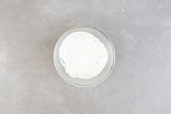 Den Joghurt mit dem angerösteten Kümmel, 1/2TL Zitronensaft und 1EL Olivenöl verrühren und den Dip mit Salz und Pfeffer abschmecken. Die gefüllte Paprika mit dem Reis und dem Dip anrichten und servieren.