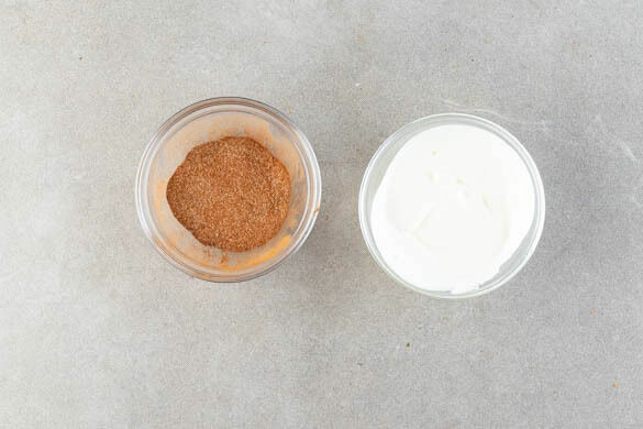 Den Zimt mit 2EL Zucker mischen. In einer zweiten Schüssel den Joghurt mit dem Vanillezucker verrühren.