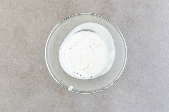 Den Knoblauch kurz abkühlen lassen, dann aus der Schale pressen und mit einer Gabel zerdrücken. 1–2EL Joghurt mit dem Knoblauch zu einer Paste vermengen, dann den restlichen Joghurt unterrühren. Mit Salz und Pfeffer abschmecken.