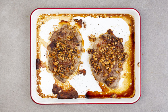Die Steaks im Ofen 6–7Min. backen, bis sie in der Mitte durch sind. Tipp: Je nach Dicke des Fleisches kann die Garzeit etwas variieren.