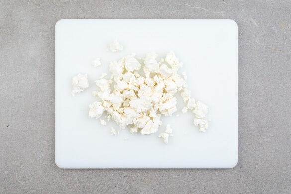 Die Zucchini und die Auberginen längs in 2–3mm dünne Scheiben schneiden. Mit ½TL Salz bestreuen und 1–2Min. ziehen lassen, dann die ausgetretene Flüssigkeit mit etwas Küchenkrepp abtupfen.