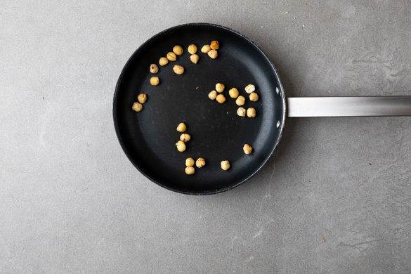 Die Haselnüsse in einer großen Pfanne ohne Zugabe von Fett in 2–3Min. bei mittlerer Hitze anrösten. Vorsicht, die Nüsse können schnell verbrennen. Zum Abkühlen aus der Pfanne nehmen und anschließend grob hacken. Die Pfanne aufbewahren.