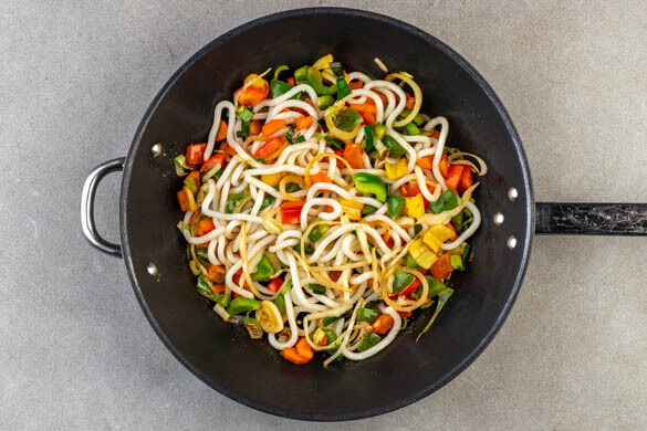 Warum sind frische Udon-Nudeln eigentlich so unheimlich köstlich? Wir glauben, es liegt daran, dass sie so viel dicker als ihre italienischen Pasta-Verwandten sind. Zusammen mit einem bunten Gemüsemix und Kabeljaufilet, das mit einer würzig-scharfen Marinade verfeinert wird, kommt heute asiatischer Genuss auf deine Teller. Für das gewisse Etwas gibt es Basilikum als Garnitur. Leicht, aromatisch und blitzschnell zubereitet.