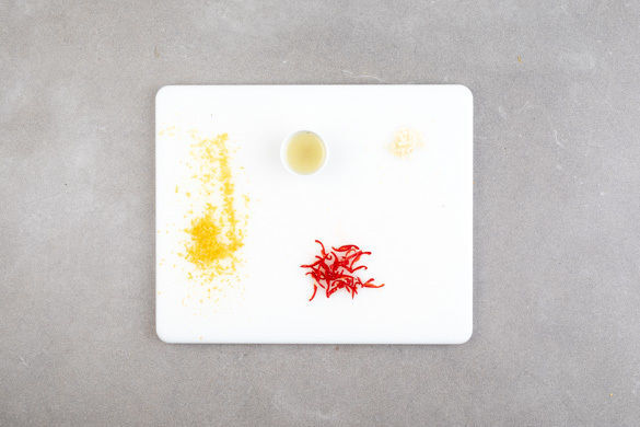 In einem großen Topf ausreichend gesalzenes Wasser für die Pasta zum Kochen bringen. Die Zitronenschale abreiben, dann die Zitronen halbieren und auspressen. Den Knoblauch schälen und in feine Würfel schneiden. Die Peperoni längs halbieren und in hauchdünne Streifen schneiden. Tipp: Für weniger Schärfe die Kerne entfernen.