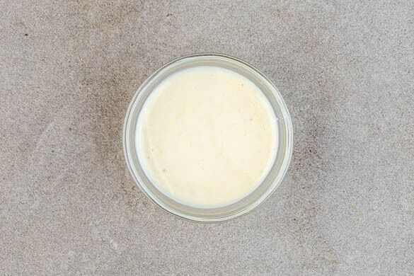 Die ½ des Ingwers oder mehr nach Geschmack schälen, fein reiben und mit 1EL Mayonnaise und 1TL Essig verrühren.