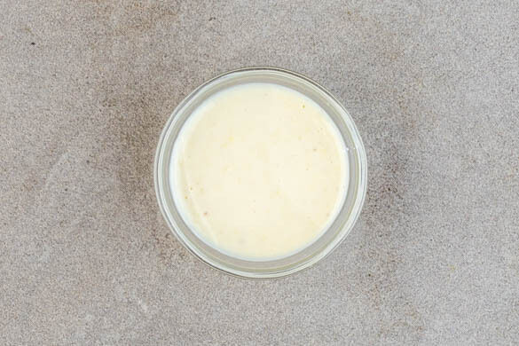 Den Ingwer schälen, fein reiben und mit 2EL Mayonnaise und 2TL Essig verrühren.