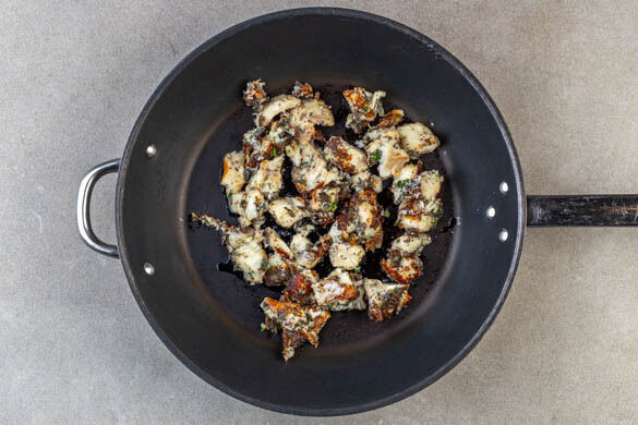 Die Gurken längs vierteln und in kleine Würfel schneiden. In einer Schüssel mit der ½ des Zitronensafts, 2EL Wasser, ½TL Zucker und 1 kräftigen Prise Salz marinieren. Ein mit Backpapier ausgelegtes Backblech mit 1EL Pflanzenöl einfetten.