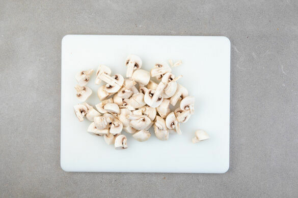 In einem Wasserkocher 1,2L heißes Wasser zum Kochen bringen. Die Pilze ggf. säubern und je nach Größe vierteln oder achteln.