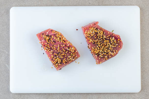Wir gestehen: Wir lieben Poké-Bowls! Deshalb können wir es nicht lassen, uns immer wieder etwas Neues auszudenken. Unsere heutige Kreation ist nicht nur unglaublich lecker, sondern steht auch noch fix auf dem Tisch. Saftig gegrillter Thunfisch, verfeinert mit einer hawaiianischen Gewürzmischung, wird zusammen mit knackiger Gurke und Avocado auf einer Portion Jasminreis serviert. Dazu gibt es pikante Sriracha-Mayo.