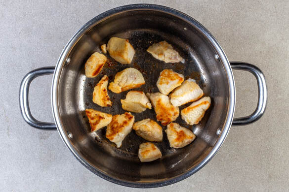 Das Fleisch trocken tupfen und mit 1½EL Mehl vermengen, dann in einem großen Topf mit 2EL Olivenöl bei mittlerer Hitze in 2–3Min. rundum goldbraun anbraten.