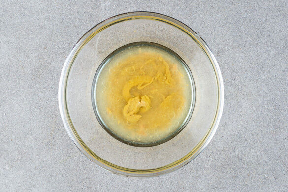 Den Thunfisch in ein Sieb abgießen. Das Tahini mit 1EL Olivenöl, 1EL Essig, 1–2EL Wasser und 1½TL Senf zu einem Dressing verrühren.