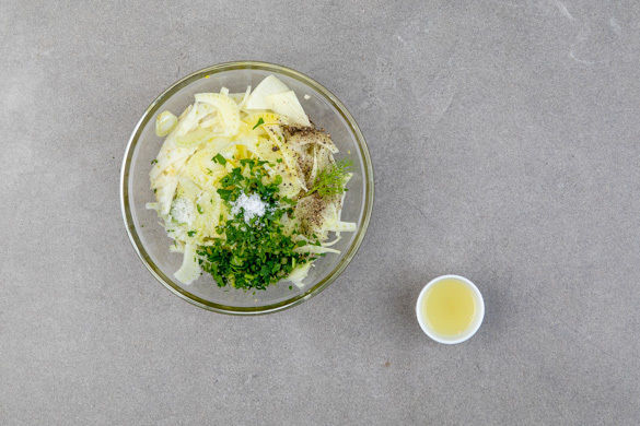 Die Zitronen halbieren und auspressen. Den Fenchel in möglichst feine Streifen schneiden und mit der Petersilie, 3–4EL Zitronensaft und 3EL Olivenöl vermengen. Mit Salz und Pfeffer abschmecken und nach Belieben mit mehr Zitronensaft verfeinern. Die Süßkartoffelrösti mit dem Fenchelsalat und dem Joghurtdip servieren.