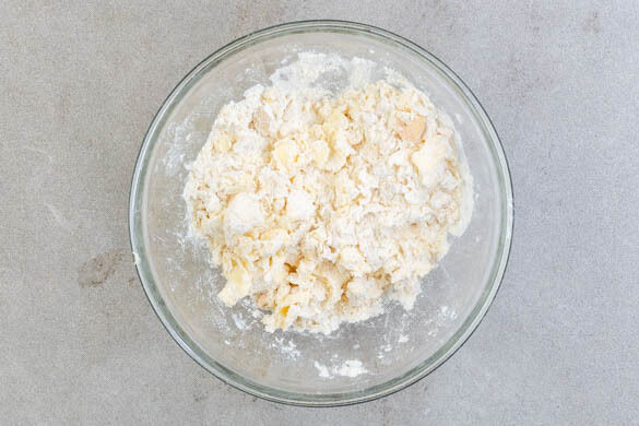 Die Cashews grob hacken. 50g kalte Butter in ca. 1cm große Würfel schneiden. Das restliche Mehl mit den Cashews, der Butter, 1EL Zucker, 1 Prise Salz und 1–2EL Wasser vermengen, dann locker zu groben Streuseln verkneten. Nicht zu lange kneten, damit kein glatter Teig entsteht!