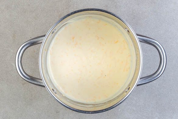 In einem kleinen Topf 3EL Butter schmelzen. Unter ständigem Rühren erst 2EL Mehl zugeben und 2–3Min. anbraten, dann schrittweise 200ml Milch und die Béchamelsauce zugeben. Die Sauce auf mittlerer Hitze zum Köcheln bringen, dann auf niedrige Hitze reduzieren und unter Rühren 4–6Min. köcheln lassen. Vom Herd nehmen und ¾ des Käses unterheben, bis er geschmolzen ist.