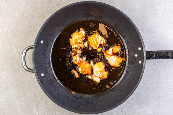 Die Fenchel-Schalotten-Pfanne mit 1½EL Zitronensaft ablöschen und mit der Zitronenschale, ½TL Brühgewürz, 1 kräftigen Prise Zucker und je 1 Prise Salz und Pfeffer würzen. Die ½ der Kochsahne in die Pfanne geben und bei niedriger Hitze köcheln lassen, bis eine cremige Konsistenz entsteht.