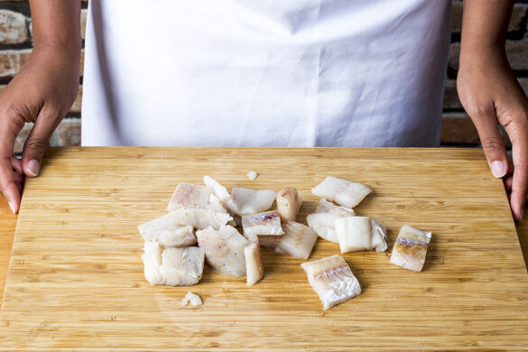 Den Fisch mit kaltem Wasser abspülen, dann trocken tupfen und evtl. vorhandene Gräten mit einer Pinzette entfernen.