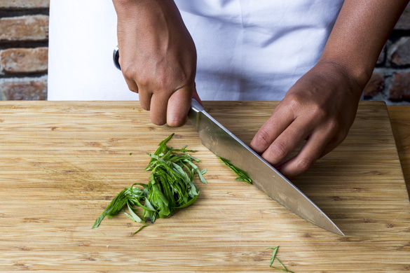 Den Fisch mit kaltem Wasser abspülen, dann trocken tupfen und evtl. vorhandene Gräten mit einer Pinzette entfernen.