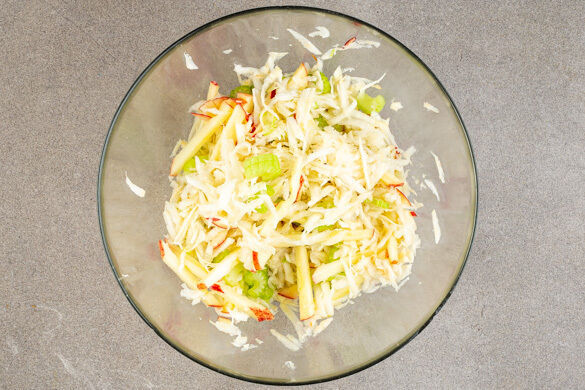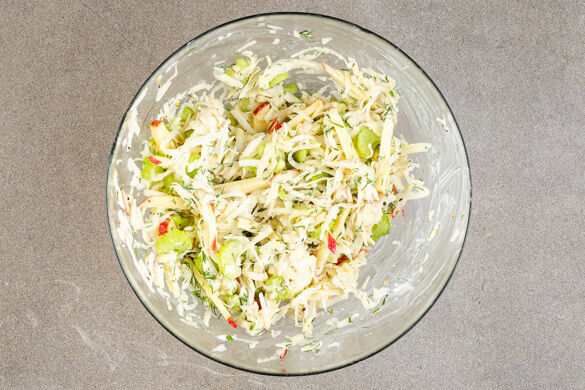 2EL Dillsauce mit dem Sellerie-Apfel-Salat vermengen.