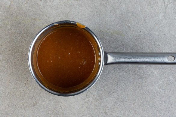 In einem kleinen Topf den Ahornsirup, die Erdnussbutter und 30–40ml warmes Wasser mit 1 Prise Salz verrühren und bei niedriger Hitze langsam erwärmen. Die Sauce nicht aufkochen lassen, sondern lediglich bis zum Servieren warm halten. Ggf. zwischendurch vom Herd nehmen und kurz vor dem Servieren erneut erwärmen.