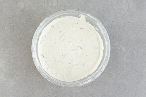 Das Mehl mit dem Backpulver mischen, dann das Spekulatiusgewürz, 1EL Zucker und 1 kräftige Prise Salz unterrühren. Die Sojasahne, 150ml Wasser, 1EL hellen Essig (am besten Apfelessig) und die Zucchiniraspel untermengen. Der Teig sollte relativ dickflüssig sein, aber noch fließen.