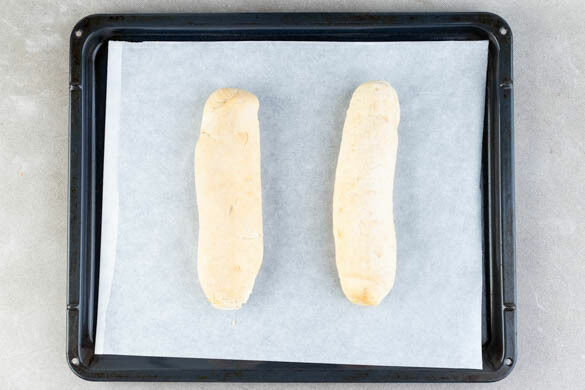 Die Baguettes auf einem mit Backpapier ausgelegten Backblech im Ofen 6–8Min. knusprig aufbacken.