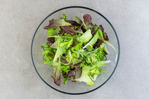 In einer großen Schüssel ½EL Olivenöl, ½EL Essig, ¼TL Senf, 1 kräftige Prise Zucker sowie je 1 Prise Salz und Pfeffer zu einem Dressing verrühren und den Salat kurz vor dem Servieren untermengen. Das Süßkartoffel-Wurst-Gratin mit dem Salat anrichten und servieren.