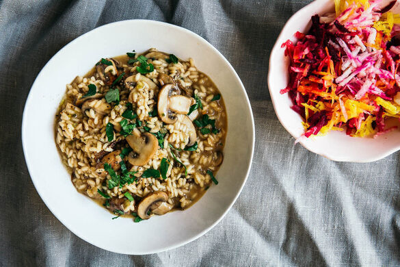 Wir sind riesige Risottofans! Heute geben wir dem lecker-cremigen Reisgericht durch frische Champignons und exquisites Trüffelpulver ein herrlich rustikales Aroma. Dazu servierst du einen würzig-knackigen Salat aus dreierlei Bete – der ist so richtig schön sonnig bunt, das Auge isst schließlich mit! Mmmh, wir freuen uns schon, endlich loszulöffeln ...