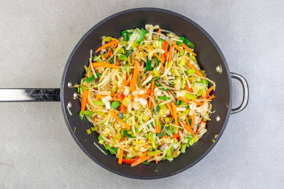 Das Gemüse und die restliche Knoblauch-Ingwer-Paste in der Pfanne mit 1EL Pflanzenöl bei mittlerer bis starker Hitze 2–3Min. braten. Mit der Würzsauce ablöschen, 1–2Min. braten, mit Salz und Limettensaft abschmecken. Die Tortillas mit Gemüse, Tofu, Koriander und Erdnüssen füllen. Mit der Sweet-Chili-Mayo beträufeln und mit den Limettenspalten servieren.