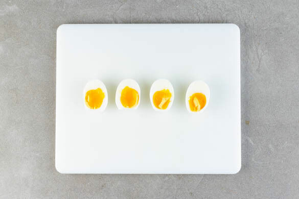 Die Eier in das kochende Wasser geben und in 5–6Min. wachsweich kochen. Mit einer Schaumkelle aus dem heißen Wasser heben und gut mit kaltem Wasser abschrecken oder die Eier in eine Schüssel mit kaltem Wasser legen. Tipp: Für hart gekochte Eier die Kochzeit einfach um 2–3Min. verlängern.