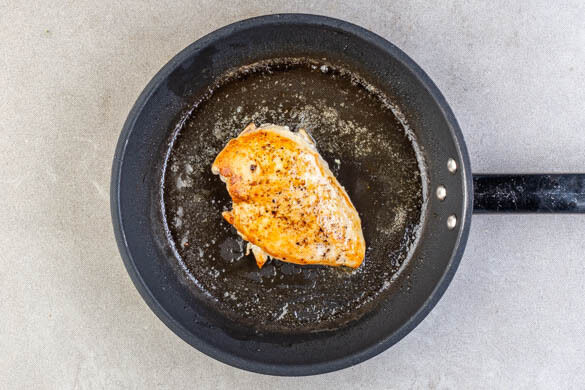 Das Fleisch in derselben Pfanne mit ½EL Olivenöl bei mittlerer bis starker Hitze auf beiden Seiten ca. 2Min. scharf anbraten. ½EL Butter dazugeben und schmelzen lassen, dann mit einem Löffel über das Fleisch träufeln, dabei das Fleisch einmal wenden. Das Fleisch bei mittlerer Hitze weitere 3–4Min. braten, bis es goldbraun und gar ist.
