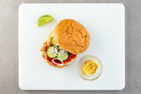 Die Mayonnaise mit 1TL Currypulver und 1EL Wasser. verrühren. Die Brötchen aufschneiden und mit etwas Currymayo bestreichen. Nach Belieben mit den Pattys, der Paprika, den Gurken, den Schalotten und dem Koriander belegen und mit Limettensaft beträufeln. Mit den Süßkartoffeln anrichten und mit der restlichen Mayo und den Limettenspalten servieren.