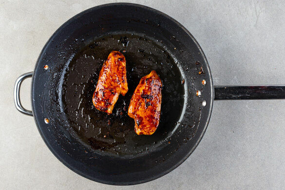 Das Fleisch in einer großen Pfanne mit 1EL Pflanzenöl bei starker Hitze auf jeder Seite 3–4Min. anbraten, bis das Fleisch durch ist. Die Hitze ggf. auf die mittlere Stufe reduzieren, falls das Fleisch zu dunkel wird.