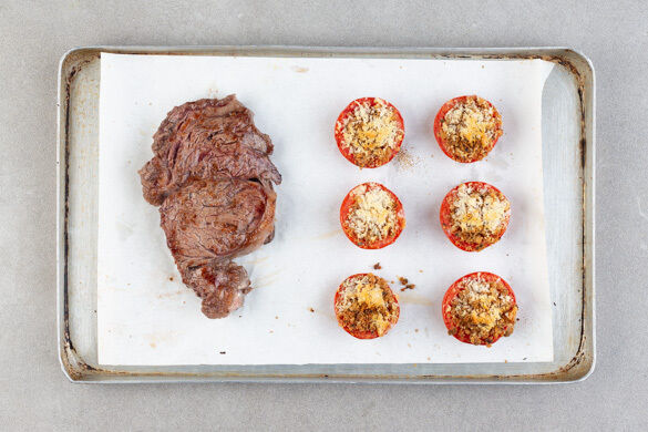 Wenn es draußen stürmt und sich das Jahr dem Ende zuneigt, ist so ein wärmendes, deftiges Essen genau das Richtige – sowohl für den Magen als auch für die Seele. In Anbetracht unseres Seelenwohls also servieren wir heute ein feines Rindersteak, das hervorragend zum cremigen Kartoffelgratin mit Rosmarin, Knoblauch und italienischem Käse passt. Als fruchtig-leckeres Zubehör gibt es im Ofen geschmorte Tomaten à la provençale!