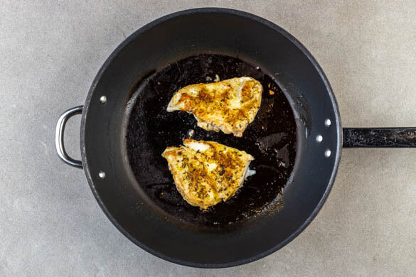 Das Fleisch trocken tupfen, horizontal halbieren und mit dem restlichen Gulaschgewürz und 1 Prise Salz einreiben. In einer großen Pfanne 1EL Olivenöl bei mittlerer Hitze erwärmen. Das Fleisch in die Pfanne geben und auf jeder Seite in 2–3Min. goldbraun und gar braten.