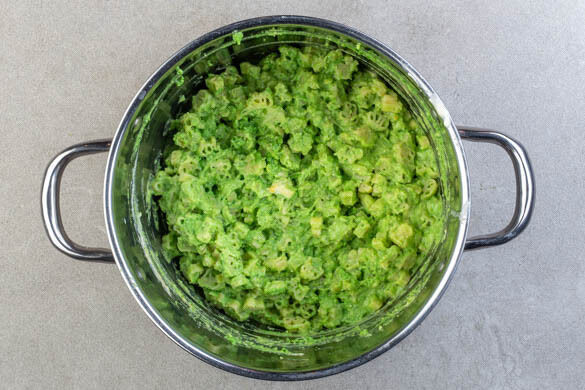 Mac ’n’ Cheese ist ein Pastagericht mit Käsesauce, das in den USA und Großbritannien verbreitet ist. Unsere Variante mit Bio-„Bauernhof“-Pasta, aromatischem Brokkoli-Pesto mit Pinienkernen und frischem Basilikum ist schön grün und herrlich mild. Samtig umhüllt die cremige Sauce aus Cheddar und Kochsahne jede Nudel und macht das Gericht zum Wohlfühlklassiker für Groß und Klein. Mmh, lecker!